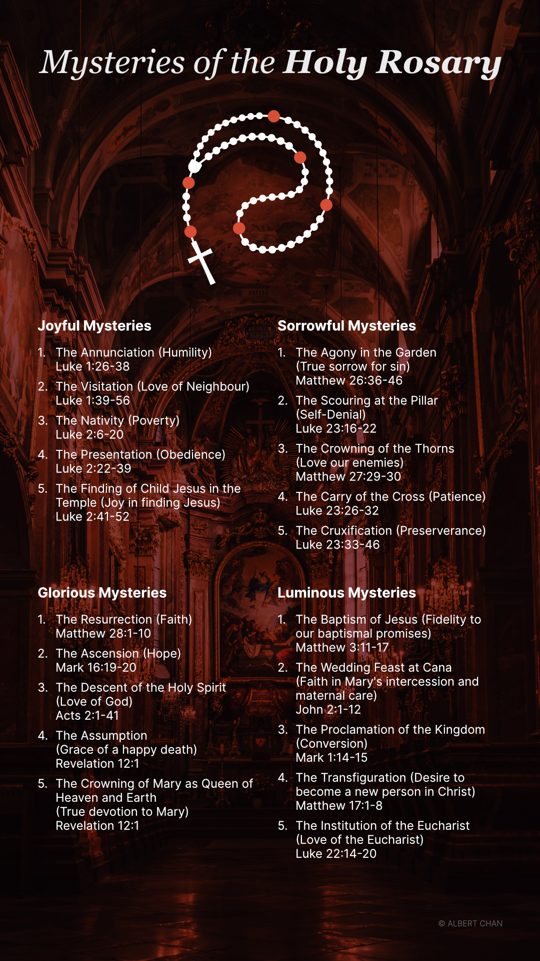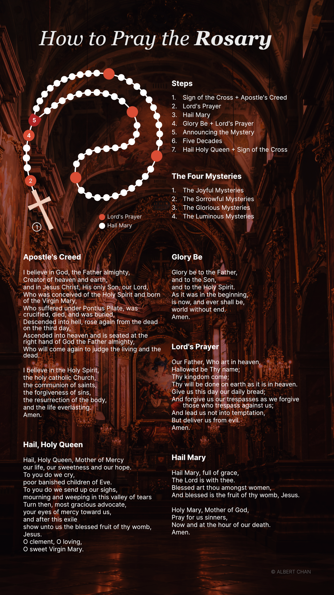 Initially, praying the Rosary seemed a little daunting as there are a set of prayers that need to be recited. My memory ain’t great so I made little digital cue cards of how to pray the Rosary. I can save them in my iPhone and pull them up anytime I need to pray. Hopefully, it will eventually stick in my brain.