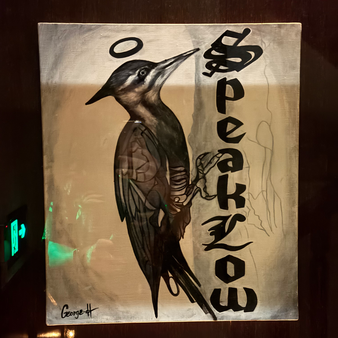 Speak Low sign inside the bar.